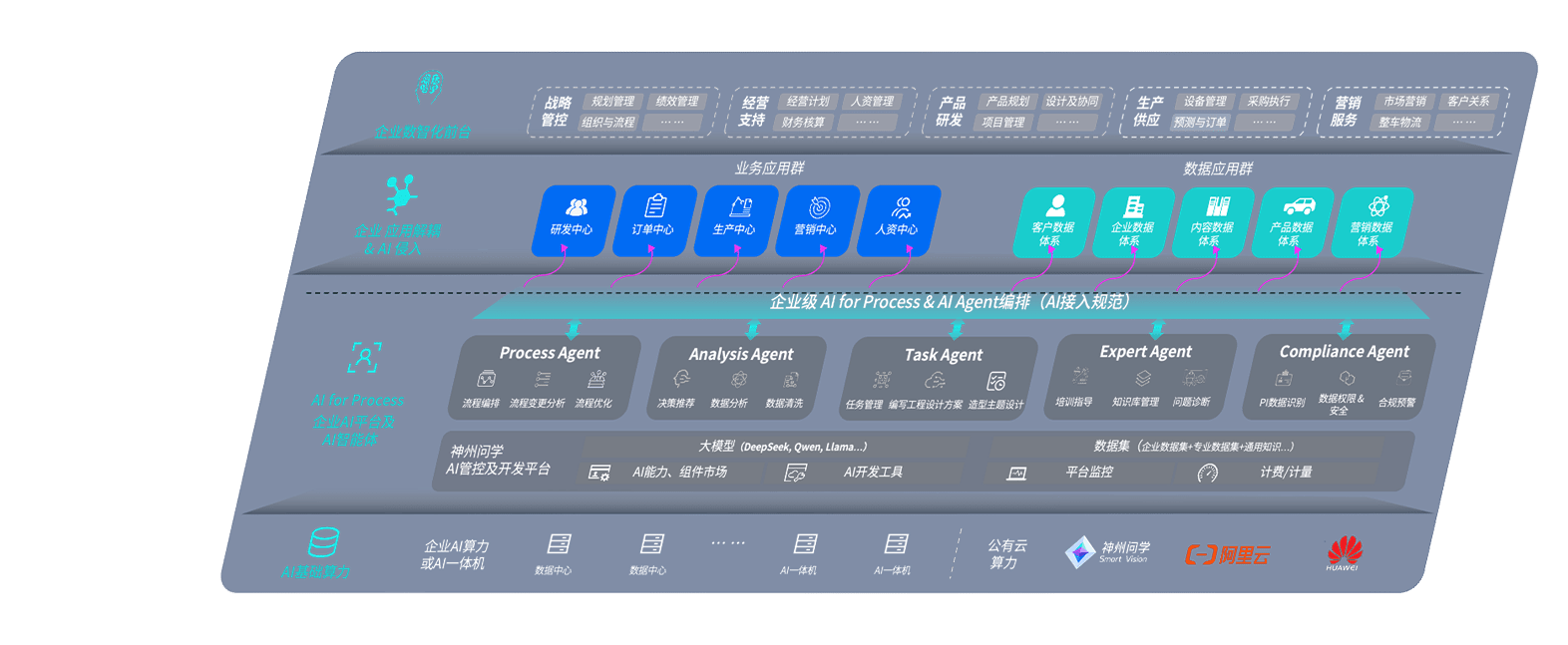 盛力国际问学智车解决方案是一套基于AI技术的汽车行业智能化系统,,,覆盖从底层算力到顶层AI应用的全栈方案。。方案由算力层、、模型层和应用层组成:算力层,,,,方案支持多种一体机配置,,,,具备云端灵活部署、、、多云适配以及动态优化计算资源的能力;模型层,,盛力国际问学平台版提供了企业级AI应用一站式构建与管理平台,,支持基于后训练强化技术的汽车企业专属模型的训练、、、评测和运营;应用层,,,盛力国际问学DeepSeek版提供包括超级员工、、、、智能招采、、智能营销、、、、智能客服、、、、AI for BI等一系列解决方案,,,,可助力汽车行业实现数字化转型,,,让管理更智能、、响应更敏捷。。。。